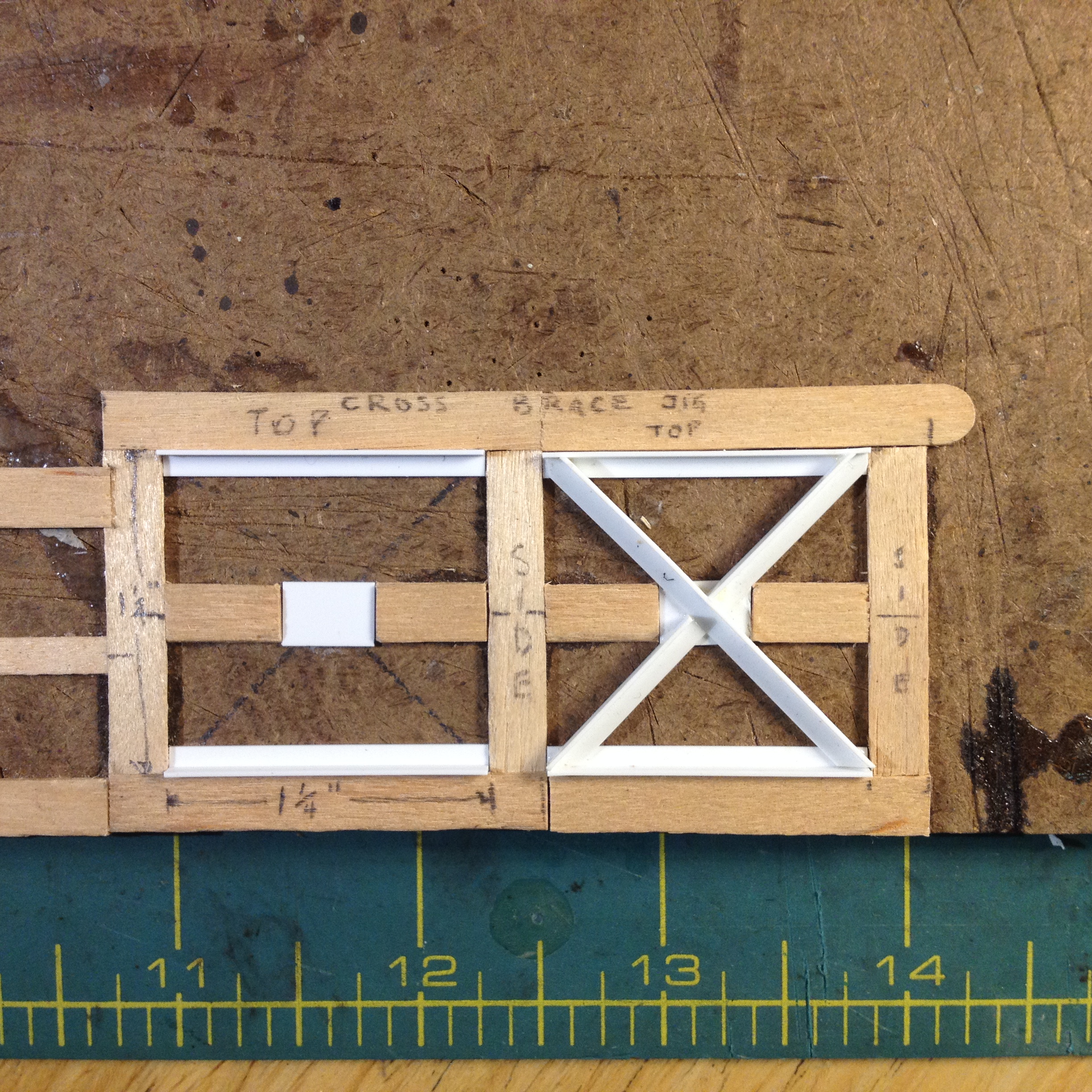 Use 7 #293 angle pieces to make the cross bracing. Each is 8 scale feet long.