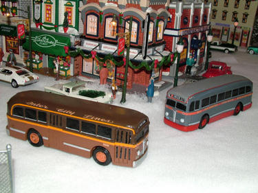 The following buses were photographed on Steve Olsen's Christmas layout and traction layout.